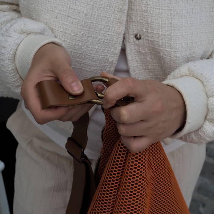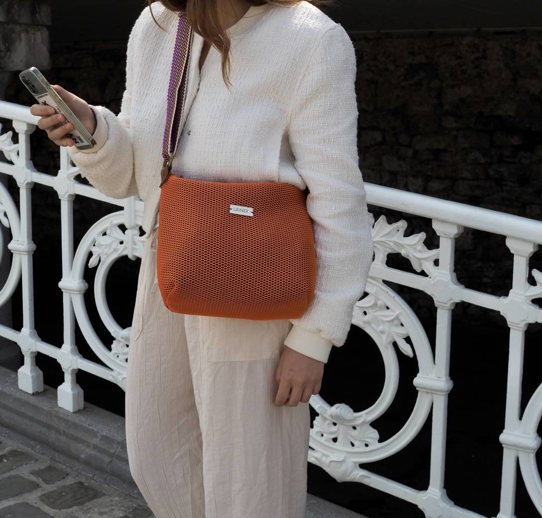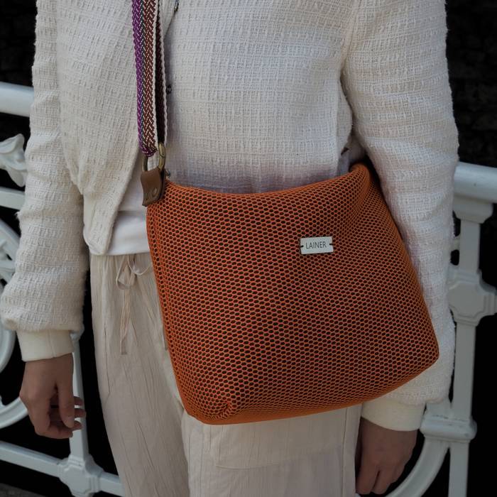 Sorbalda-poltsa gurutzatua, 3d sareta-ehunez egina, kolore laranja polit batean