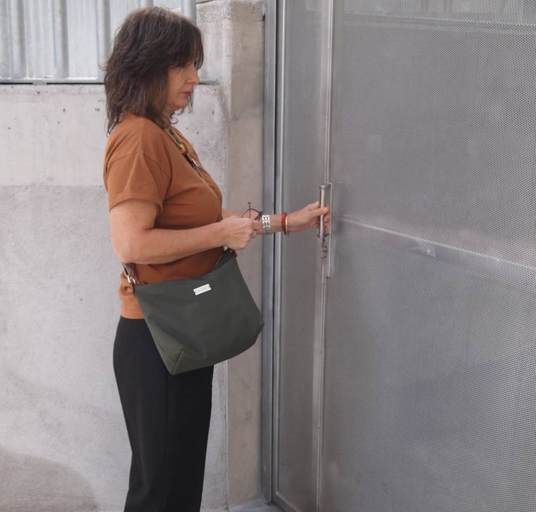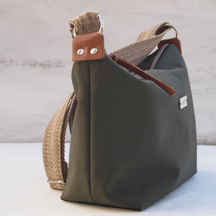 Sorbaldako poltsa gurutzatua, neoprenozko ehun iragazgaitzez egina, berde kaki kolorekoa