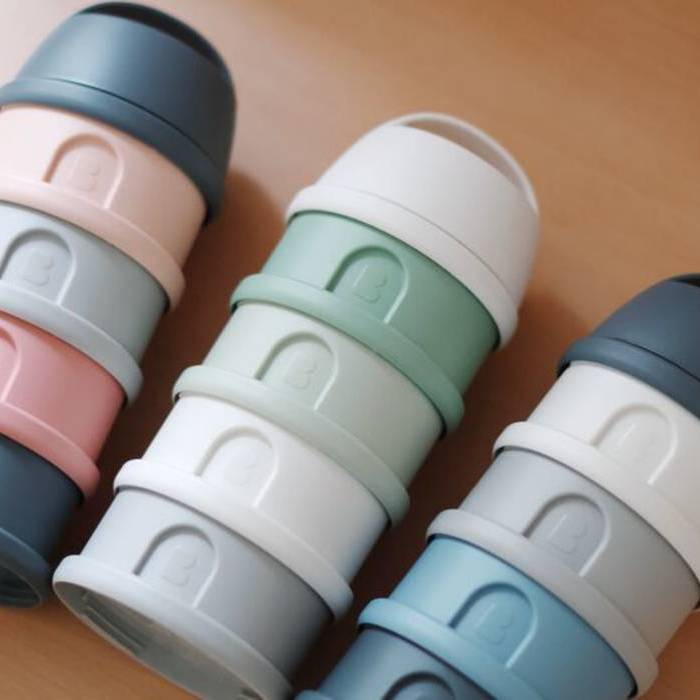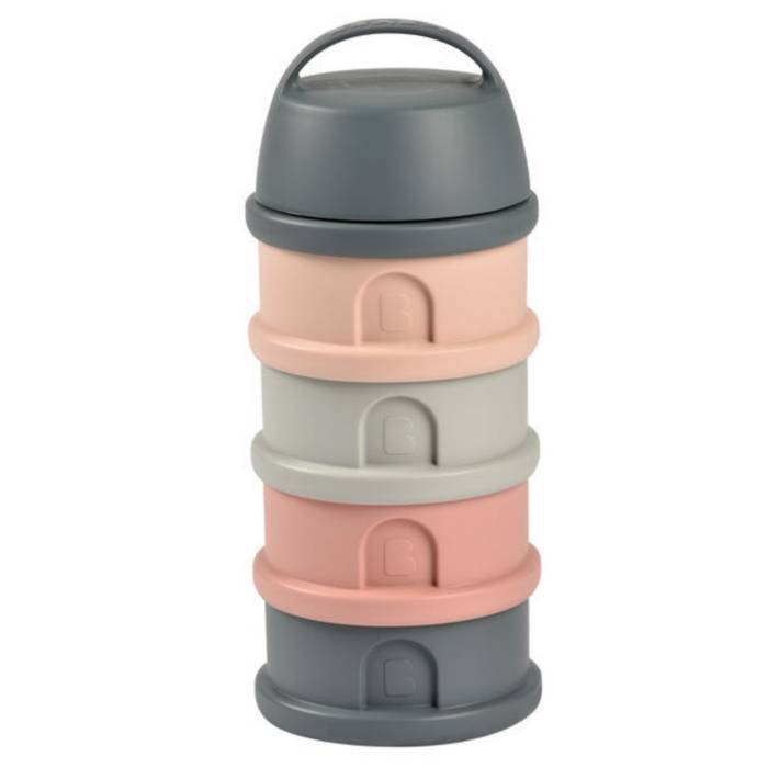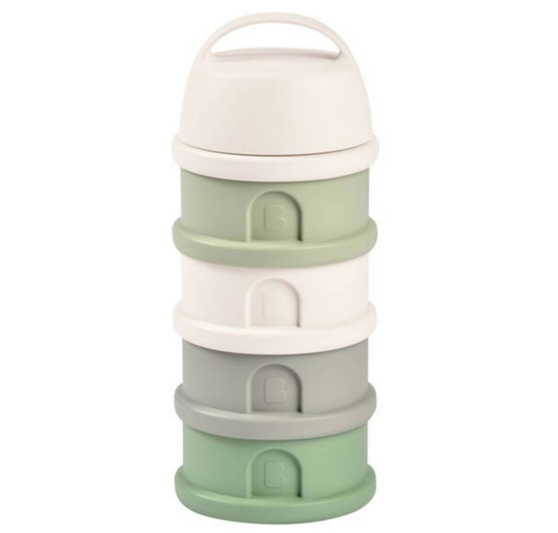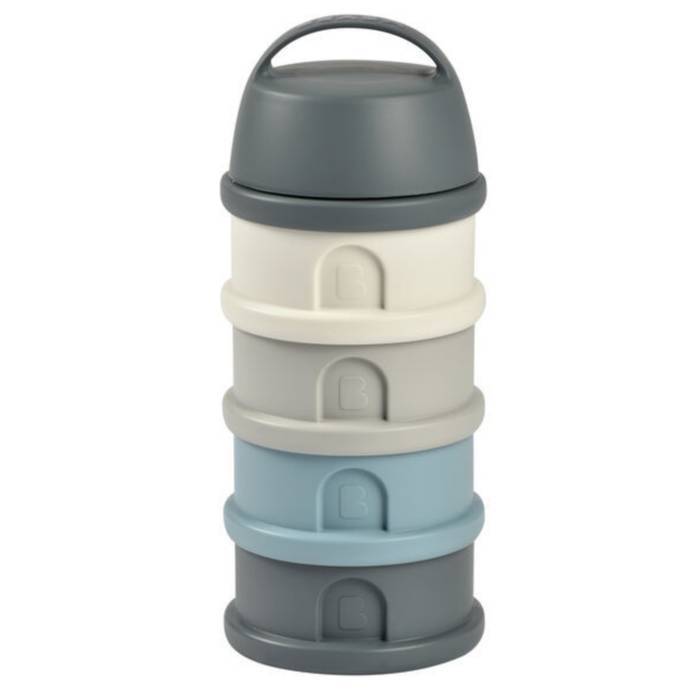 Haurtxoentzako esne hautsaren kutxa dosifikatzailea, 4 konpartimentu metagarriz osatua.
