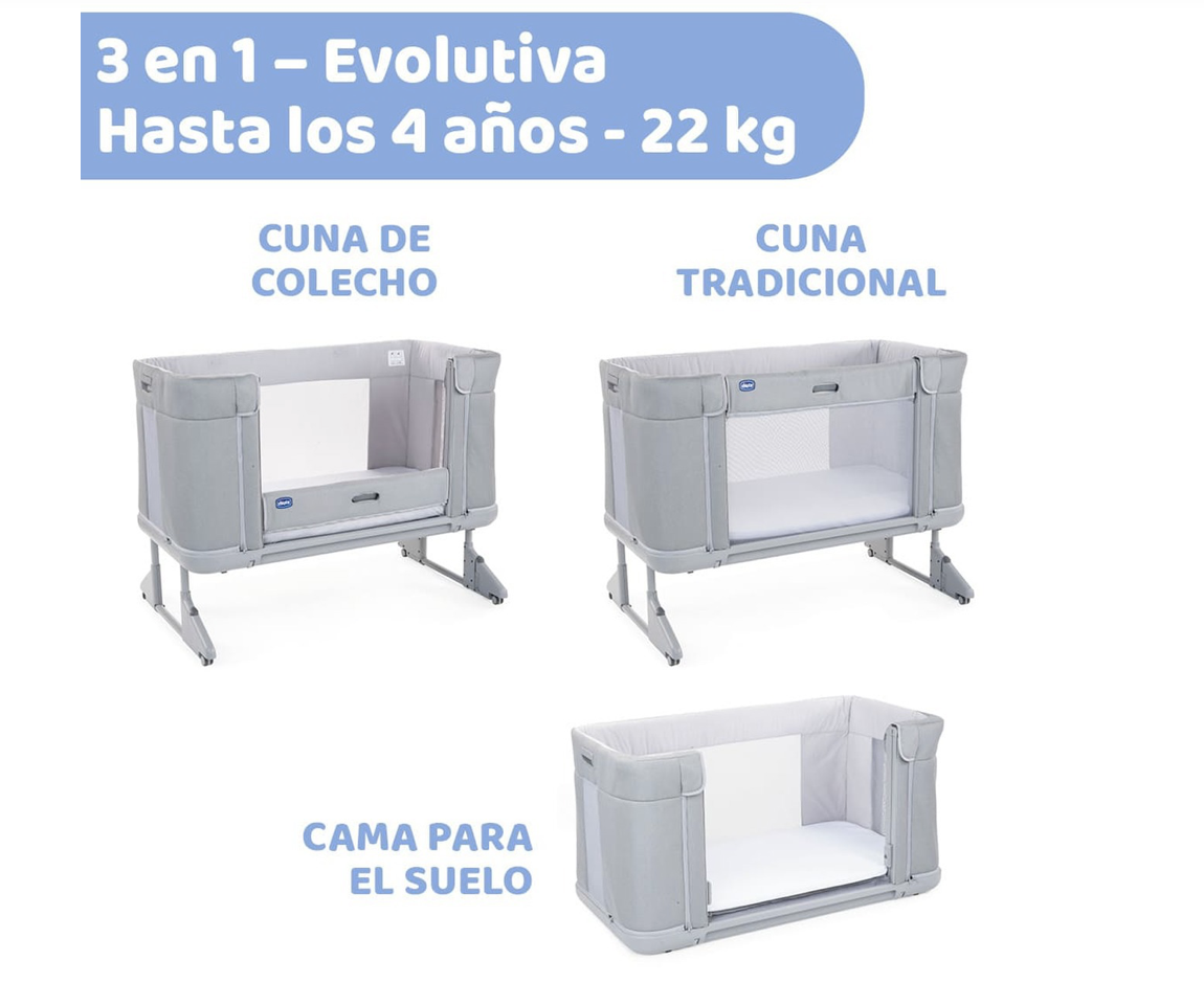 CUNA EVOLUTIBOA: Jaiotzatik 4 urtetara, 3 funtzio desberdinekin: sehaska bildua, sehaska tradizionala eta lurreko ohea.