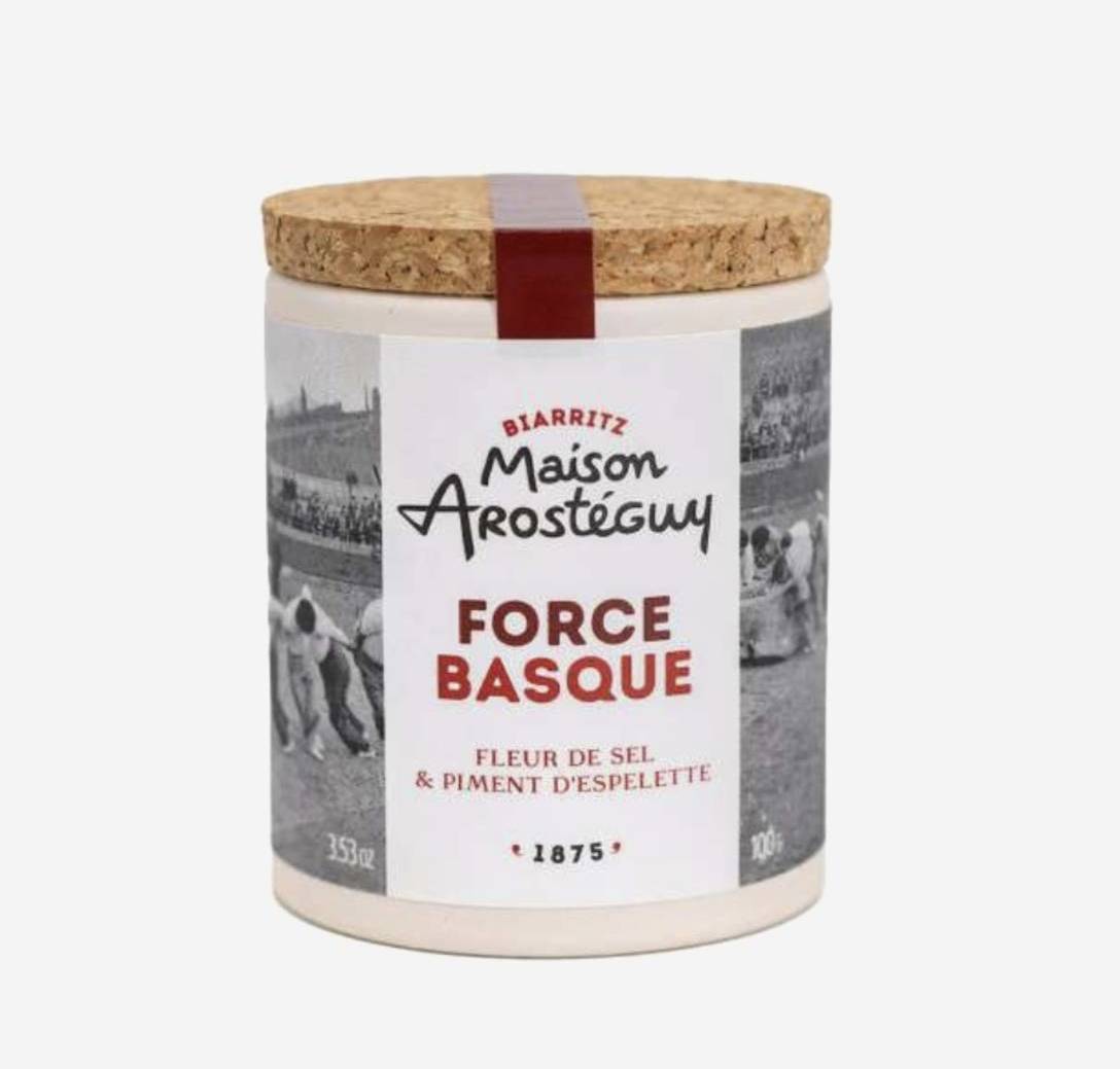 Euskal indarra Pierre Arostéguyren errezeta originala da, Guérande gatz-lorearen nahasketa zaporetsua, kirrinkaria eta lurrindua, eta Espelette beroaren eta usaintsuaren piperra, badia arrosa eta perrexil mutur batekin. Izaeraren ongarria da, oreka ideal bat “gazia – Piperrekin ondua”.