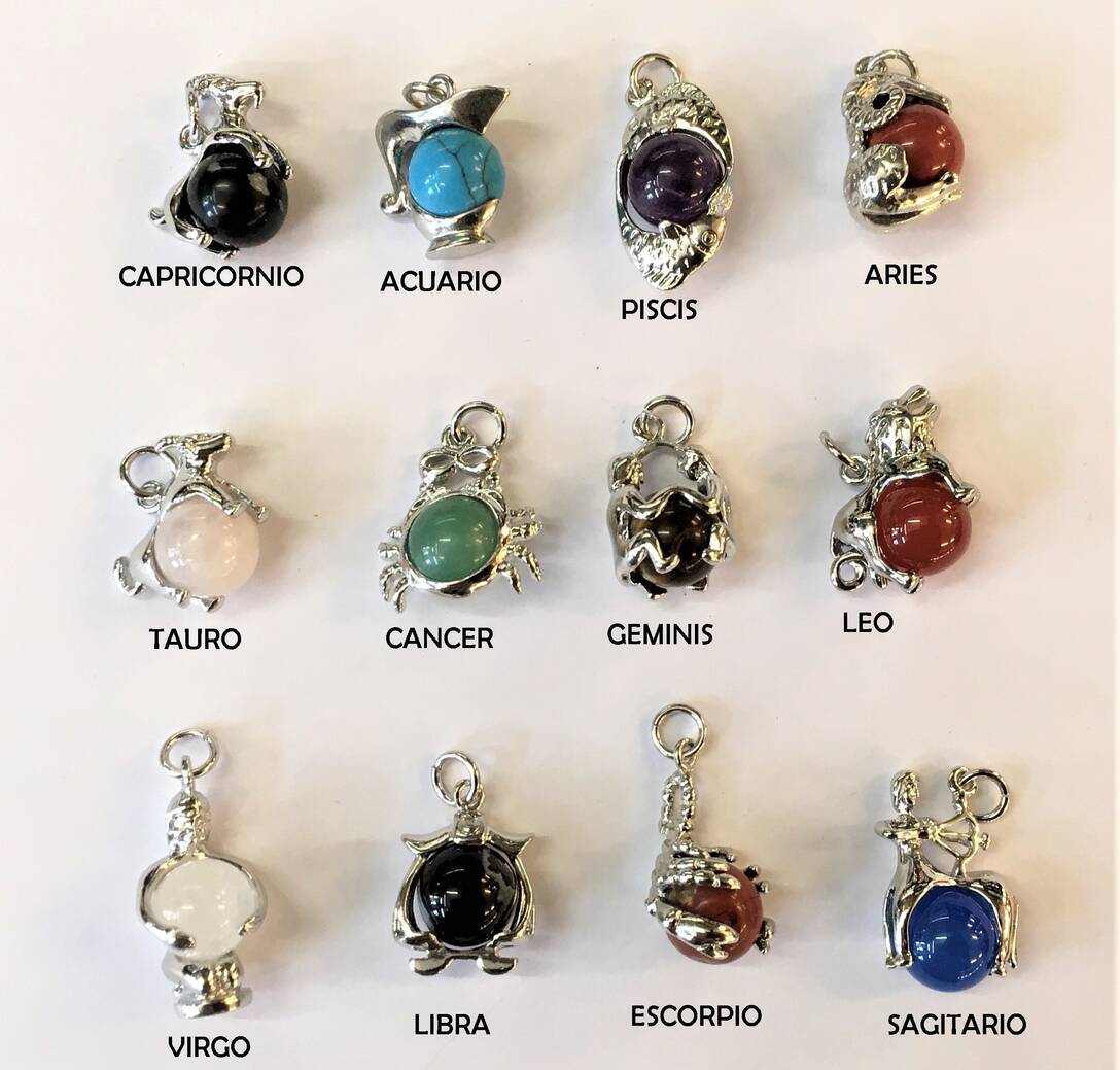 Horoskopoko zintzilikarioak dagokion mineralarekin.