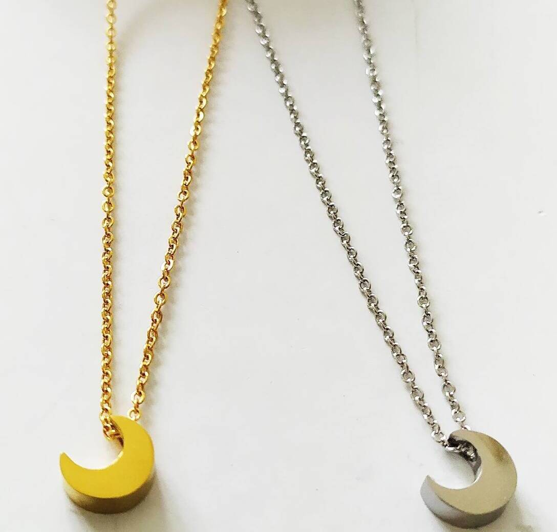 Ilargi erdiko lepokoa. Altzairu herdoilgaitzean egina eta 18 k urrezko bainua du