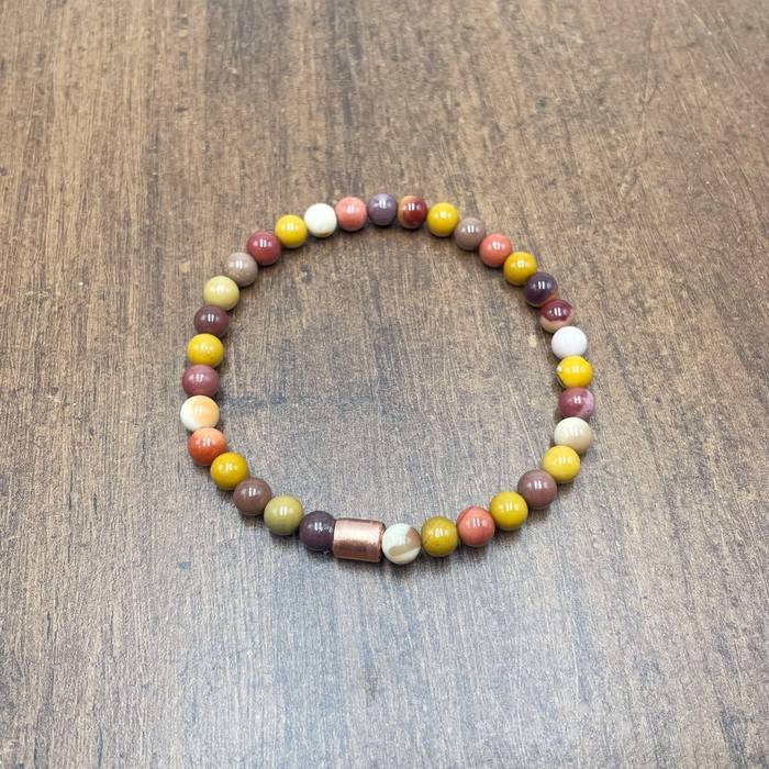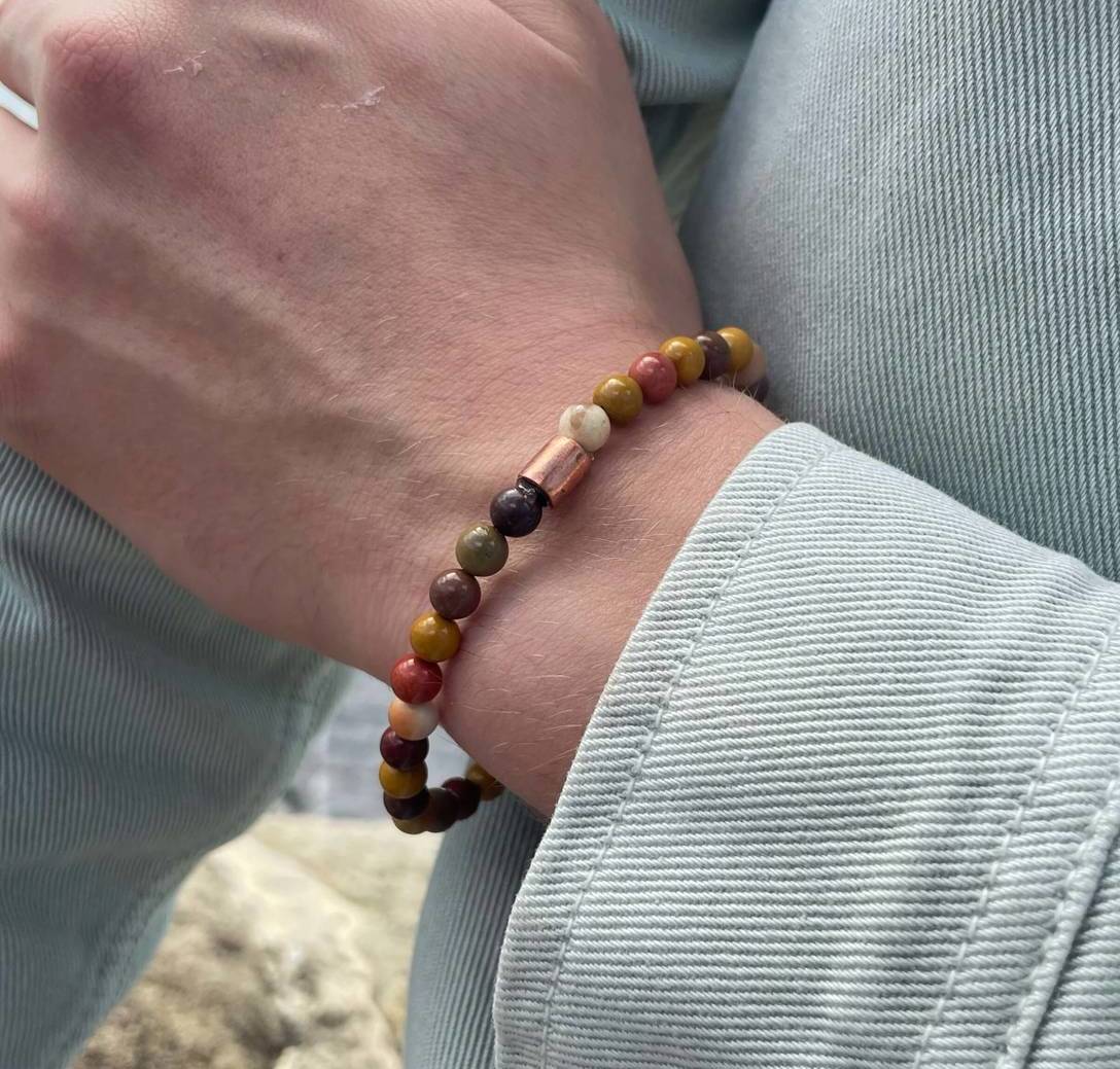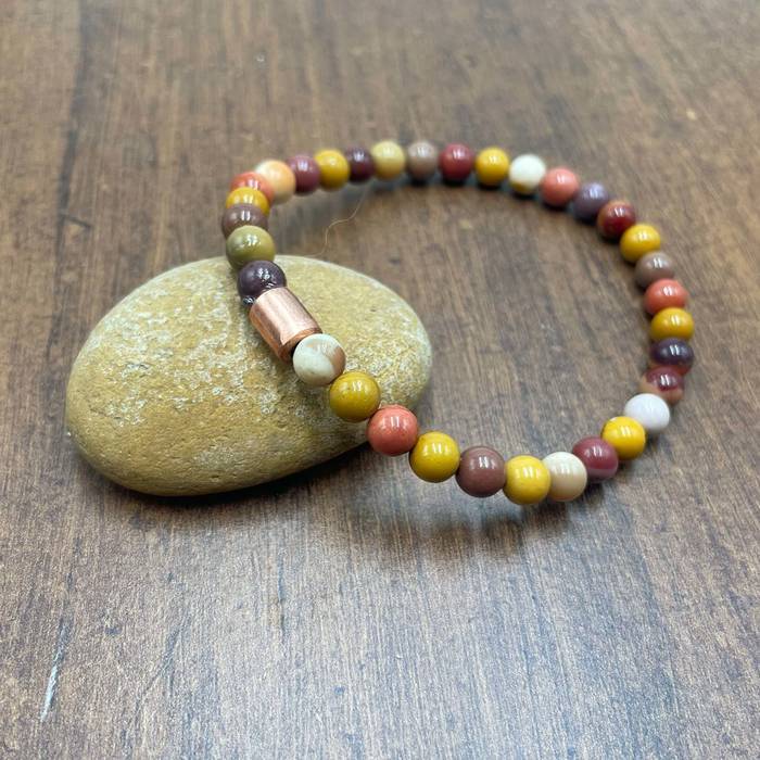 6 mm-ko jaspe mookaitako eskumuturrekoa. Jaspe mota honek lurraren koloreak ekartzen ditu gogora, bizitzaren esentzia.