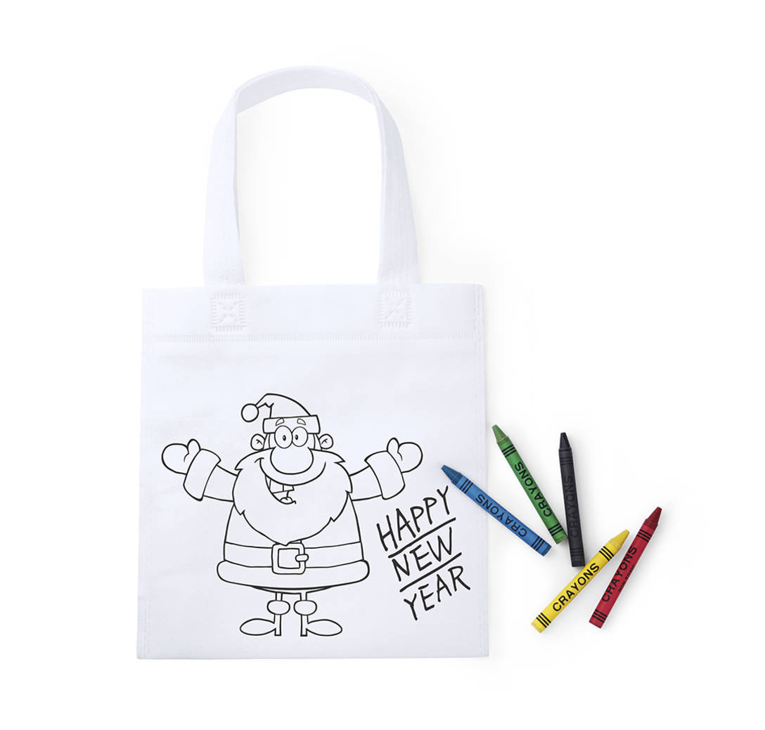 Ehundu gabeko poltsa zuria argizariekin koloreztatzeko bereziki diseinatua. Hainbat koloretako 5 gorputz argizari zilindriko barne. 33 cm-ko luzerako sorbalda uhalekin eta bero-zigilatutako akabera batekin.