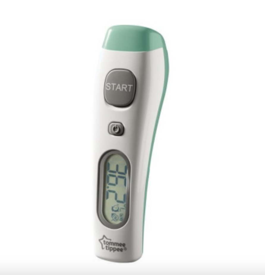 Kontakturik Gabeko Aurrealdeko Termometro Digitala: Lo dagoen bitartean haurtxoaren tenperatura neurtzeko aproposa. Azkar eta zehatz, erakutsi irakurketa LCD pantailan 2 segundotan bakarrik. Sukarraren adierazlea barne hartzen du eta azken 25 neurketak biltegiratzen ditu.