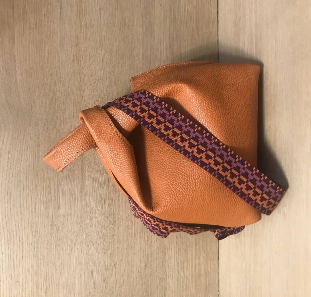 The Mini Julia Bag poltsa laranja, larruazalean egina. Presio-itxitura, barruko poltsikoa eta bi mosketoi dituen bi koloretako bandolera tira du. Baldolera moduan zintzilikatuta eraman dezakezu, edo hura gabe eskutik helduta.