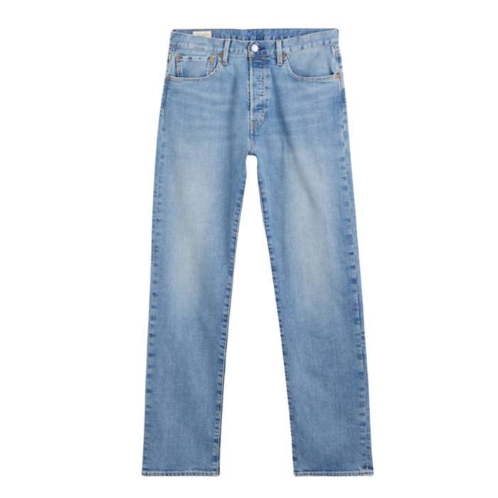 Levis 501, hanka zuzenekoa. % 50 kotoi organikoa, % 44 kotoia % 1 likra, % 5 poliesterra, oso leuna, freskoa eta elastikoa. Elastikotasun handiz eta berreskuratzeko gaitasun handiagoarekin egina dago. 5 patrika eta botoidun brageta du. Hanka zuzena eta gerrira egokitzen da.
