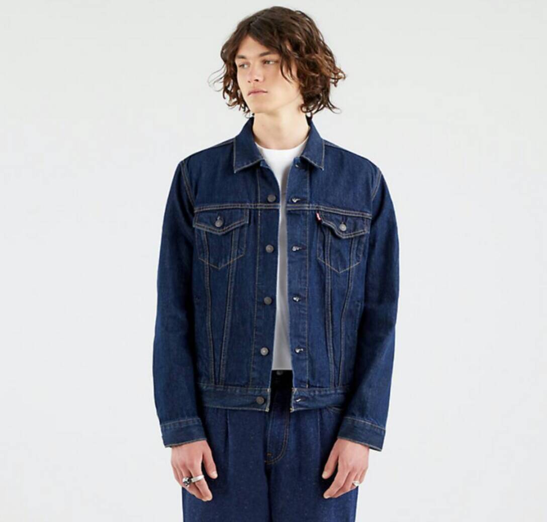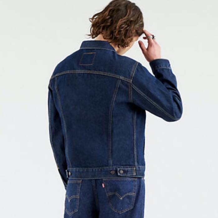 Levis jaka bakeroa, gaur egungo modeloa, ehun oso atsegina eta leuna, ilun kolorekoa. 6 ixteko botoi Levis esklusibokoa marka erregistratua dutenak, beste bi aurreko poltsikoetan, beste bi ukabilean eta beste bi atzeko gerrikoan. Modeloak M taila du.