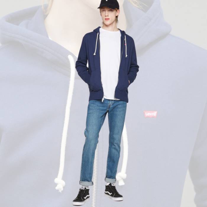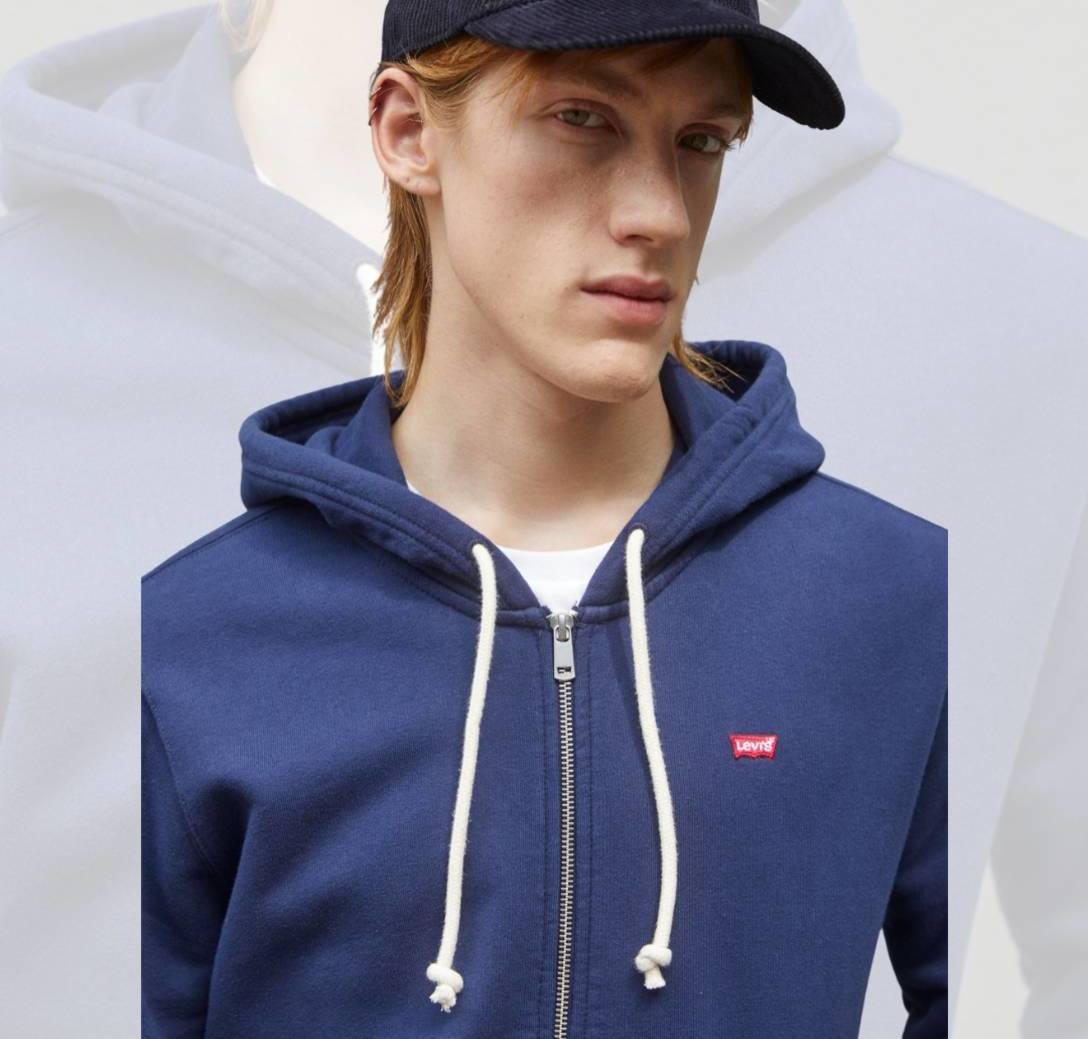 Levisen jertse polita, grixan edo urdin-kolorekoa, oso mesedegarria, ezkerrean Levisen mini logo gorria duena; ezin hobea bai neguan beroki azpian eramateko, bai udaberrian eta baita udazkenean ere. Modelo honek kaputxa du, kontrastatutako soka zuriarekin, eta oso gazte-kutsua ematen dio. Behetik gorako kremailerak oso praktiko egiten du, eta jaka edo jertse gisa eraman dezake.