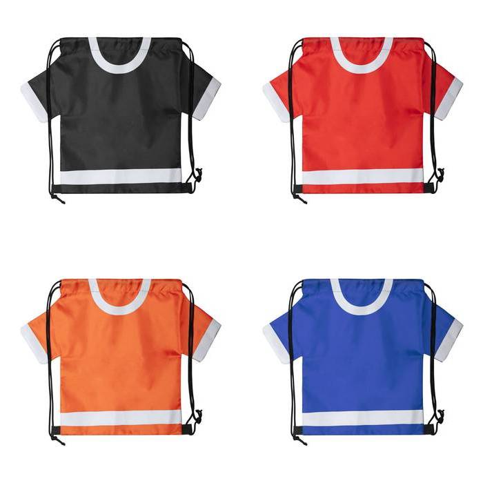 Umeentzako lokarrizko motxila original eta dibertigarria kamiseta moduan. 210D poliesterra leunean, ixteko lokarri beltzekin eta izkin indartuekin. Kolore bizien sorta zabalean eskuragarri.