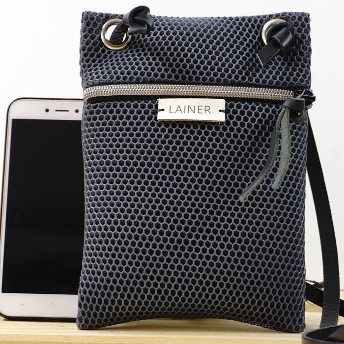 Bandolera duen behi-larruzko kremailera-poltsa txikia
