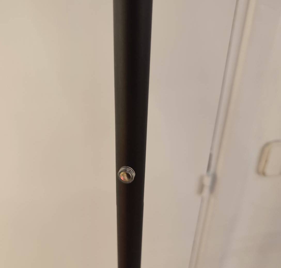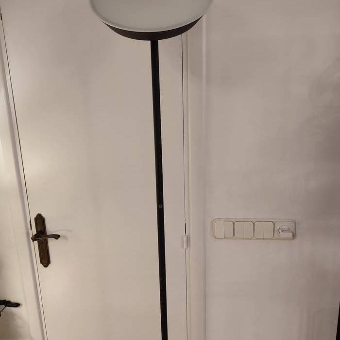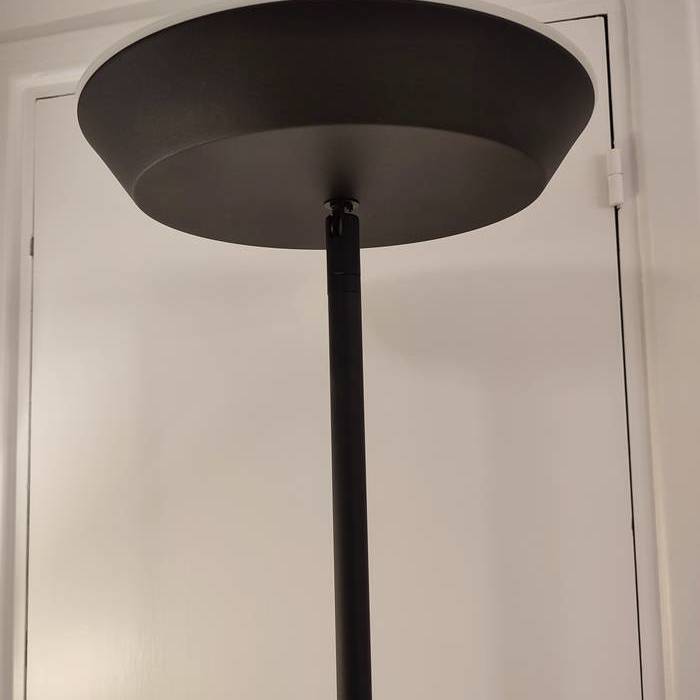 Zutik dagoen lanpara beltza, 1,80 metroko altuera duena, metalezkoa. 3 argi-intentsitate, buru birakaria. Kontsumoa 20 W, 2100 LM, 3000 K