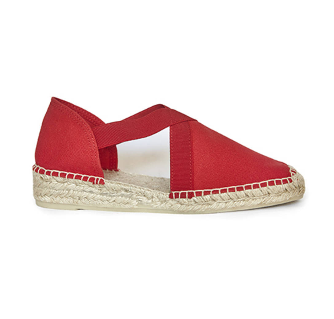 lanazko alpargata gorria, elastikoekin eta atzeko falka bikoitzarekin