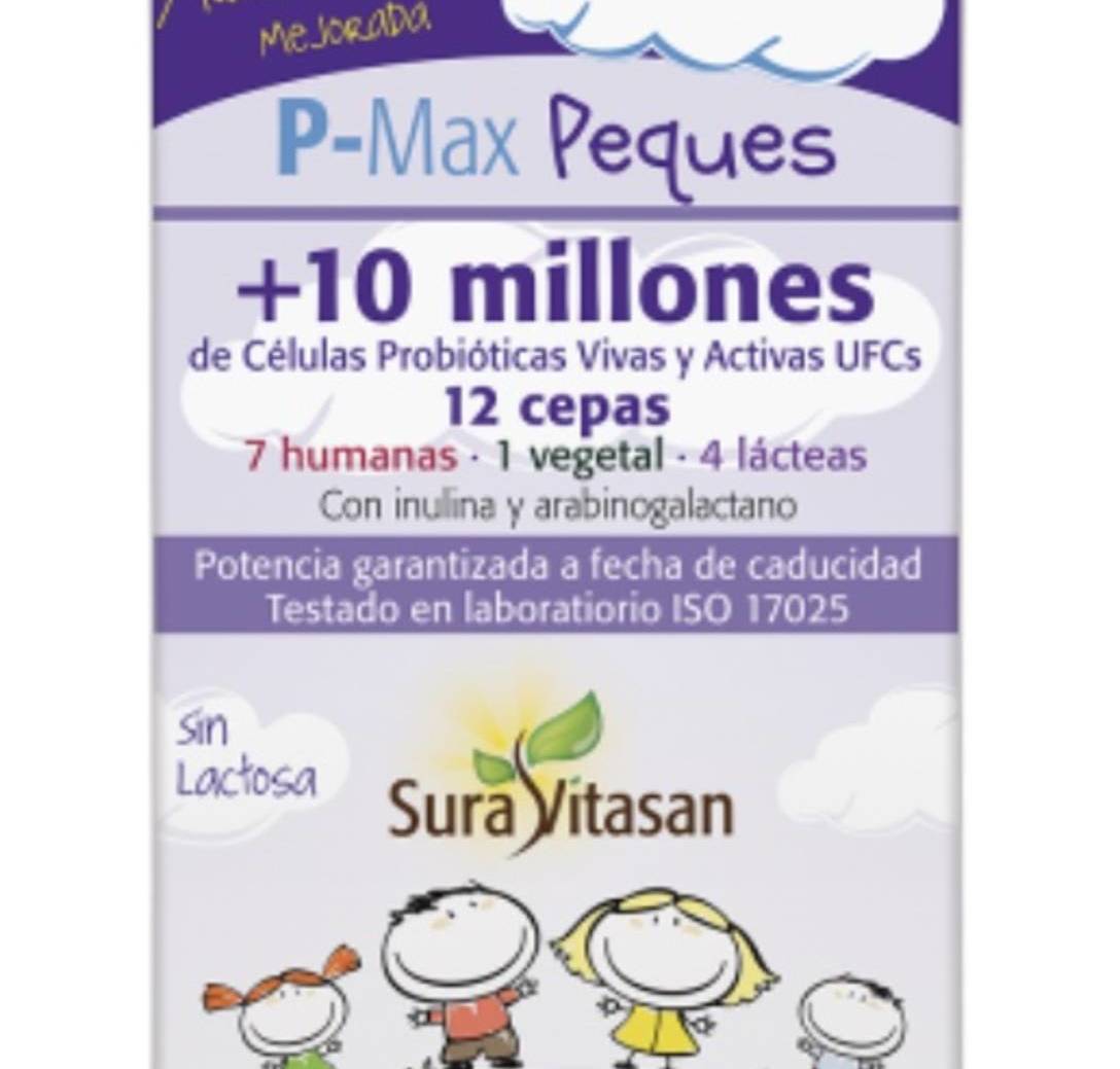 P-Max Peques, 12 andui probiotikoen formula ultra-kontzentratu eta aurreratua da, F.O.S. (txikoria) eta A.O.S. (alertzearekin), txikien hesteetako flora orekatzen laguntzeko. Gutxienez 10.000 milioi bakteria bideragarri eskaintzen ditu zerbitzu bakoitzeko. Administratzeko erraza da hauts formula bitartez, elikagaietan gehitzeko, zaporea edo ehundura aldatu gabe.