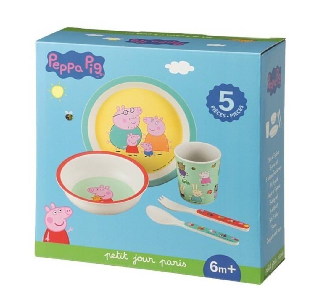 5 piezako melamina paketea: zopa platera, plater laua, edalontzia, koilara eta sardexka