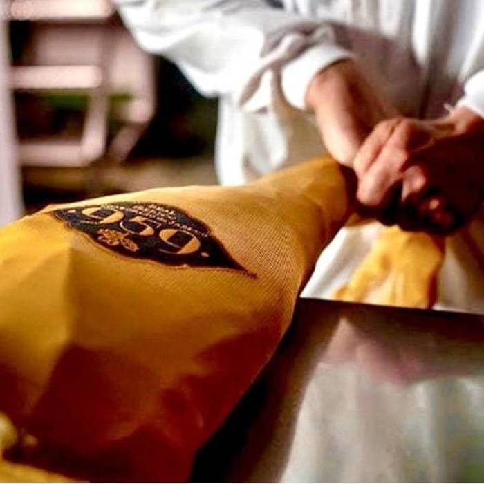 Ezkur beso %100 iberiko osoa hezurrarekin 4,250/4,750 Kg 959 de Jabugo : Ezkurreko urdaiazpiko iberikoaren antzeko zaporeko, beso apur bat da baina koipetsua.