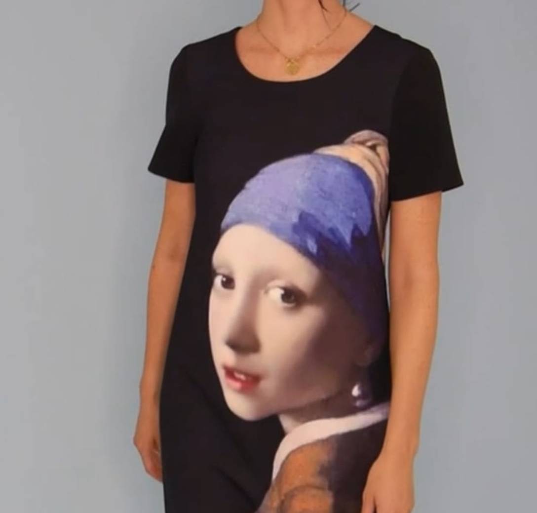 Tirante zuriz jantzita, gasa estanpatuarekin.