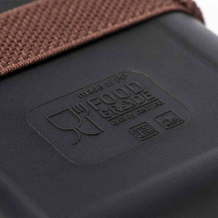 1l-ko bazkari-kutxa BPArik gabeko PP material erresistentean, banbu-estalkiarekin. Segurtasun-uhal elastikoa estalkian eta Food Grade ziurtagiria, elikagaiak produktua fabrikatzeko erabilitako materialarekin kontaktuan jartzen direnean segurtasuna bermatuz.