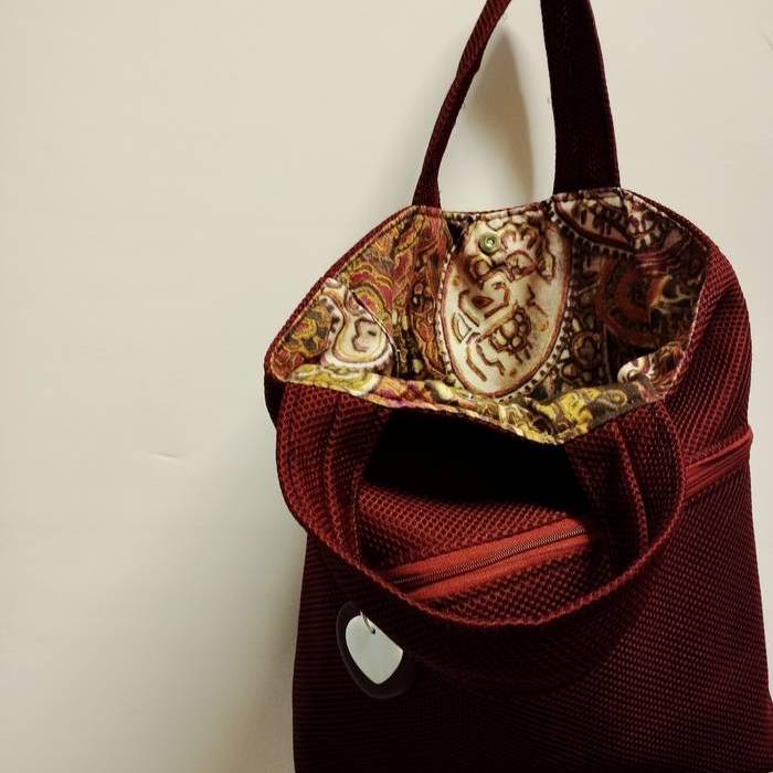 Poltsa granate ultra-arina, Mesh 3D ehunezkoa, diseinu modernoa eta hiru dimentsioko egitura dituena, estiloa eta nortasuna ematen dituena. Malgua, erosoa eta oso arina, egunerokorako osagarri ezin hobea da ukitu dotore eta gaurkotuarekin.