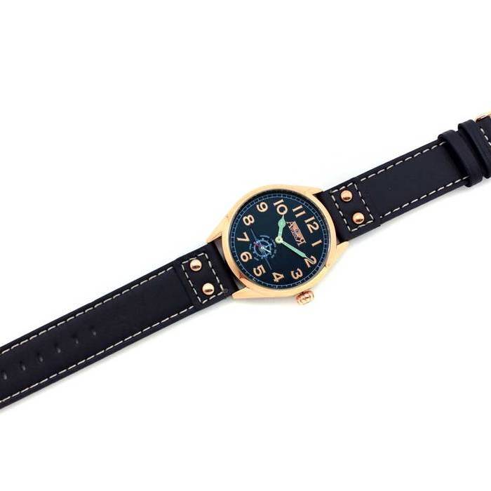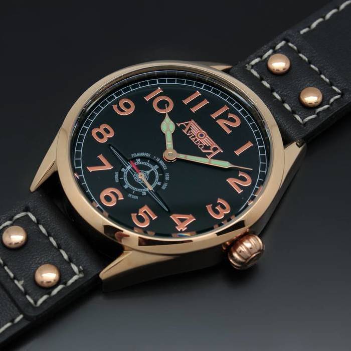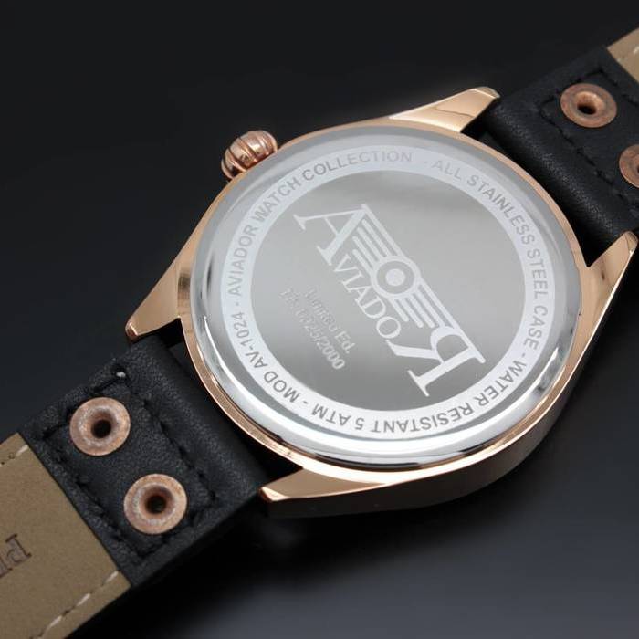 Altzairu herdoilgaitzezko kutxa duen erlojua, urre arrosa eta Japoniako mugimendua, non Mosca hegazkinaren helizeak bigarrenak markatzen baititu ehizaldi mitiko honen omenezko erloju eder honetan.