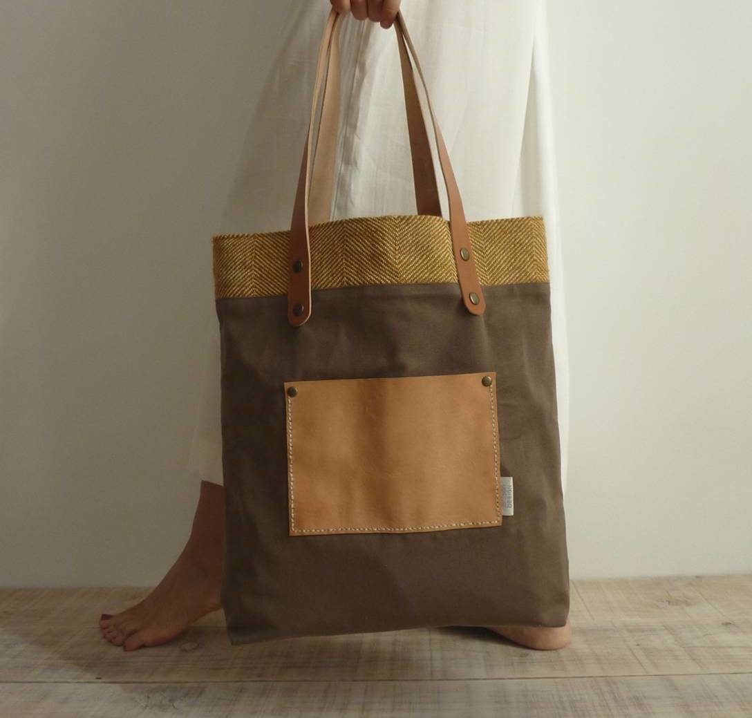 · Kanpoko poltsikoa, bigantxa-larruzkoa, eskuz josia
