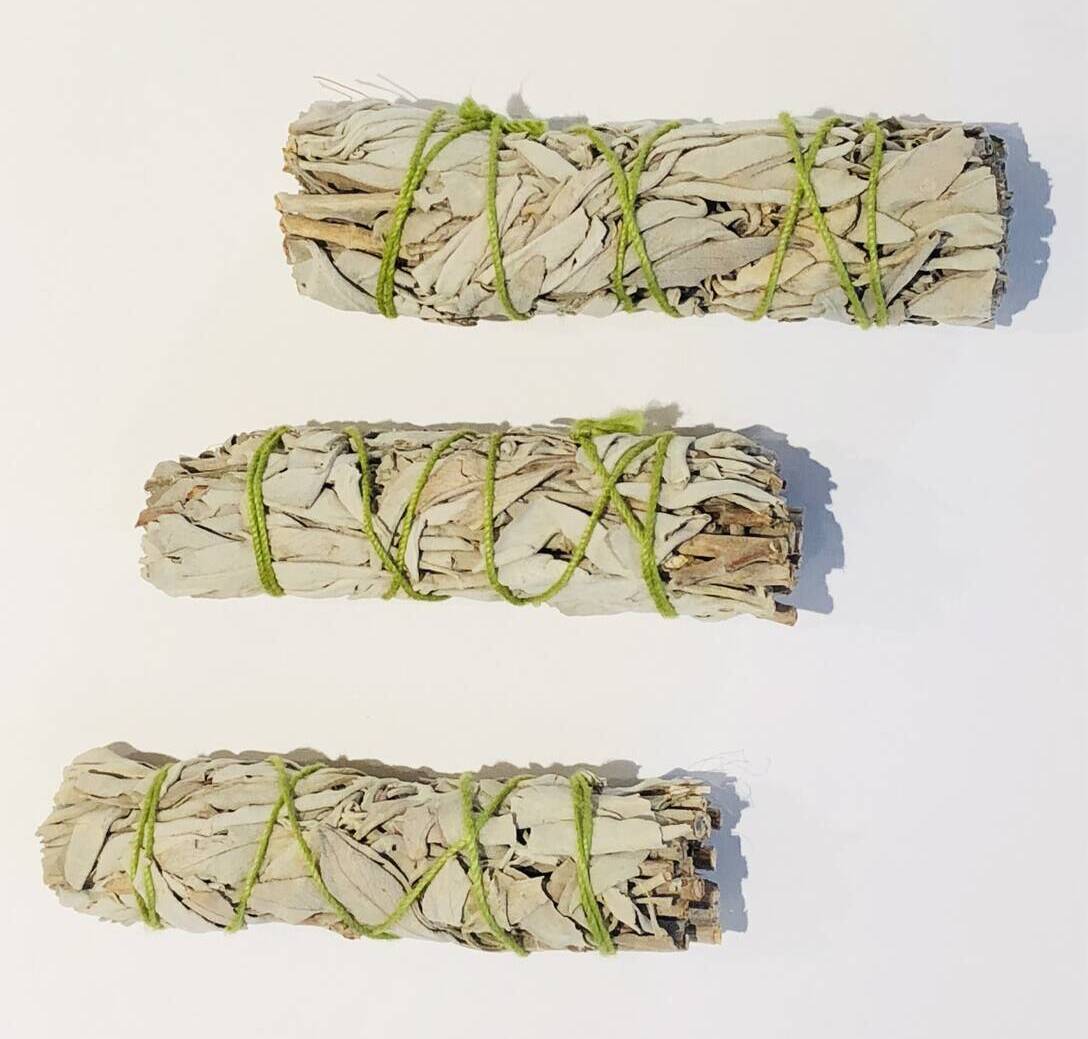 Eskuz egindako Salvia. Etxeak edo lantokiak energia txarrez garbitzeko edo intsentsu moduan erabiltzeko.