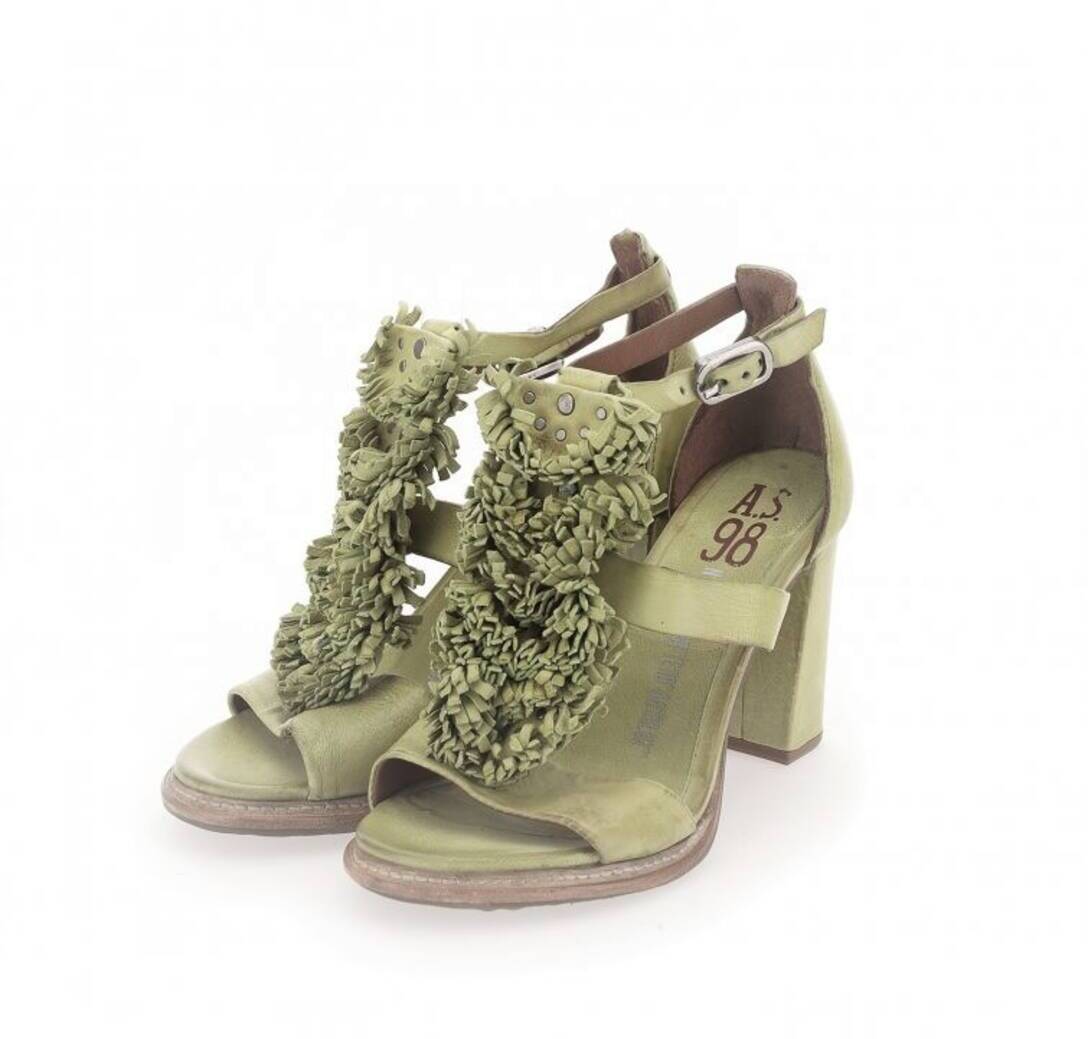 AS98 larruzko sandalia eroso eta aldakorra, jeans edo soineko luze batekin konbinatu eta zure lookari ukitu erromantikoa emateko. Takoi luze eta erosoarekin egun osoan zehar sentitu gabe eramango dituzu. Kolore berdeak udako giroa emango die zure jantzi guztiei.