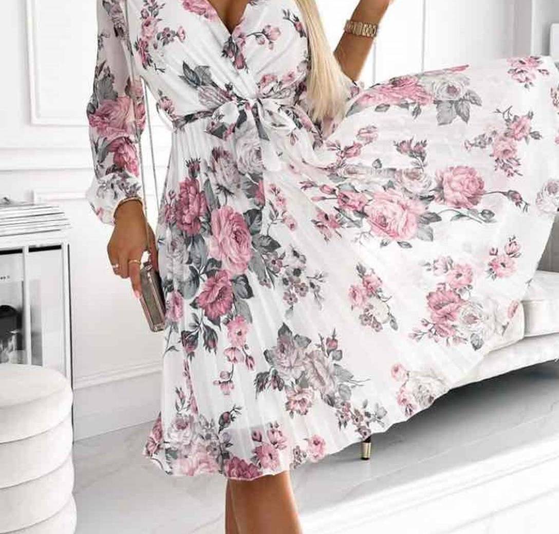 Crep-en soineko ederra, uve-an eskotea eta gona plisatua dituena; ezin hobea look berezi baterako.
