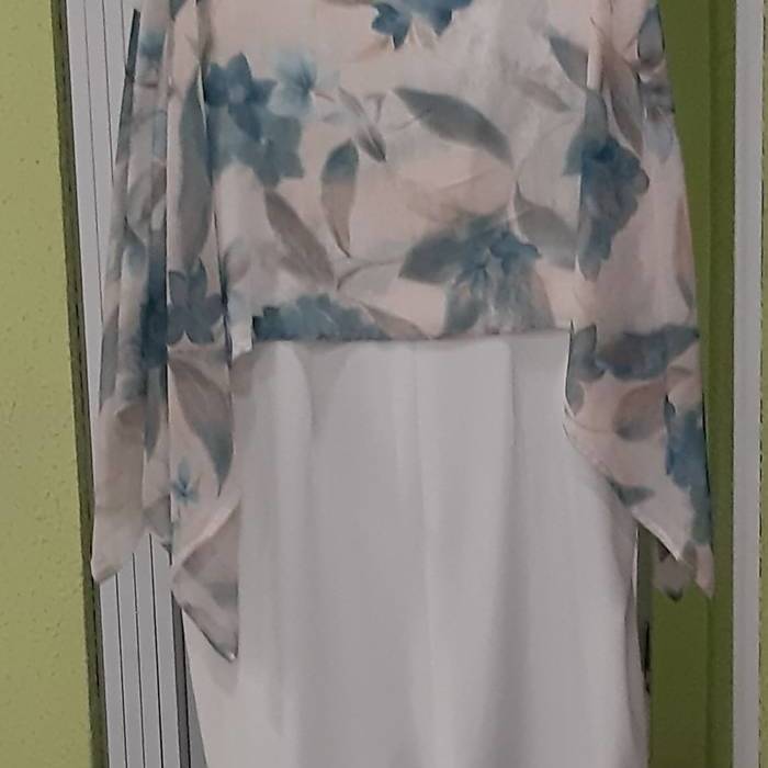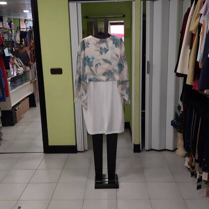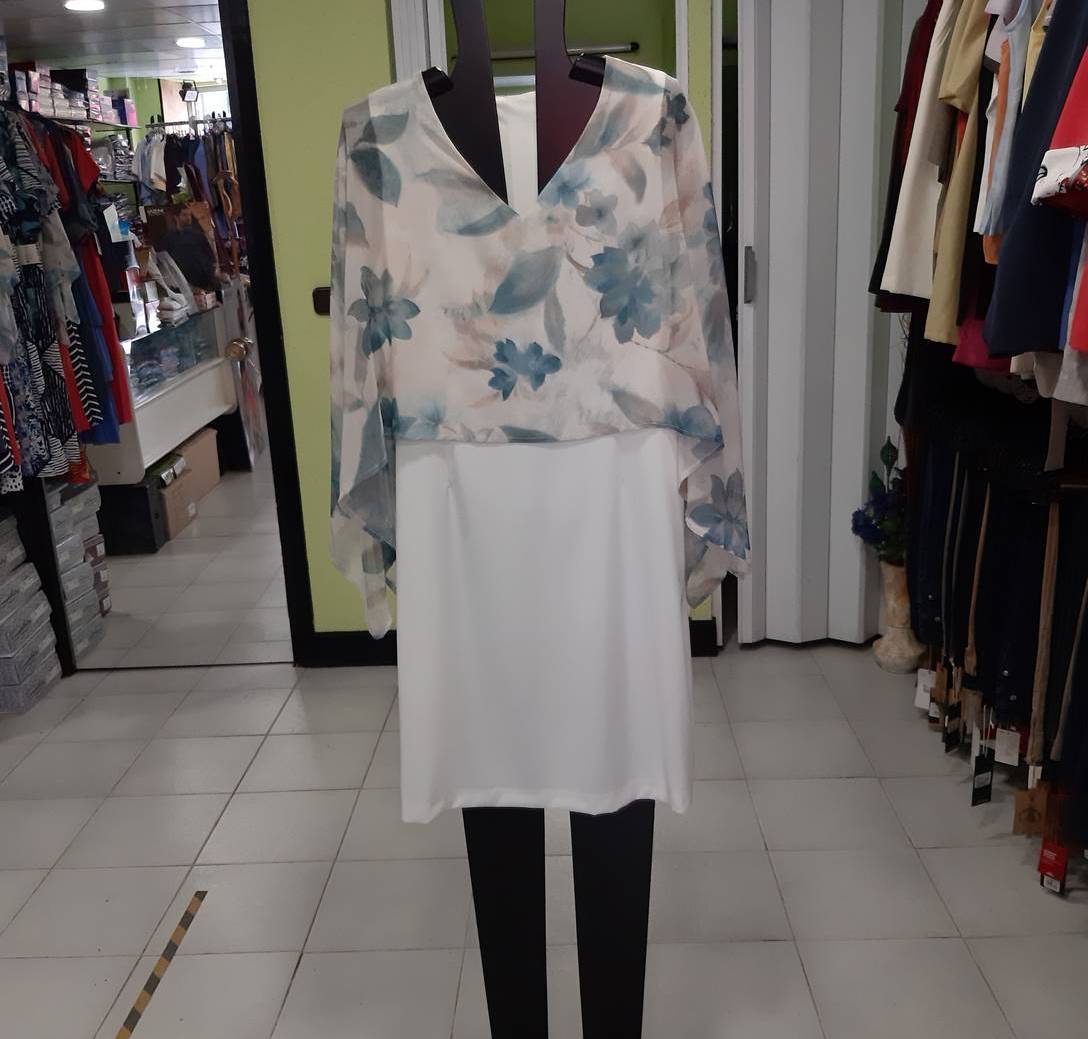 Tirante zuriz jantzita, gasa estanpatuarekin.