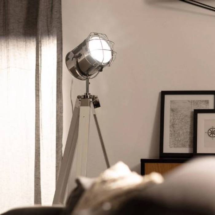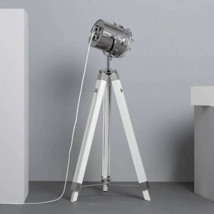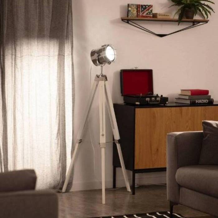 Turea egurrezko eta metalezko solairuko lanpara. Kolorea: Zilarrezkoa