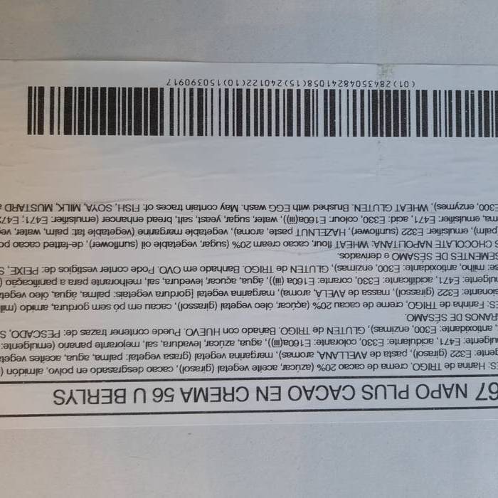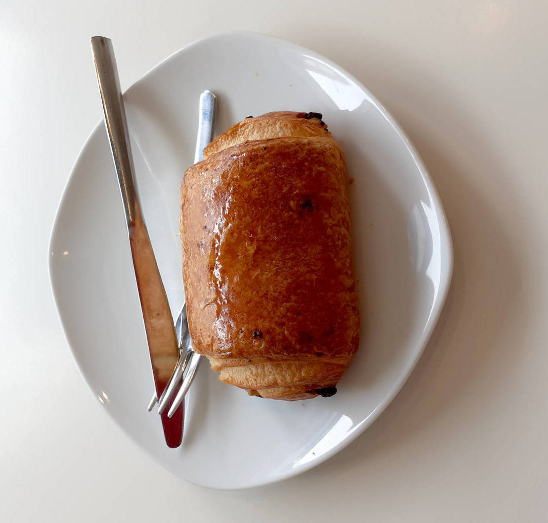 Txokolatezko napolitana. Txokolatearekin egindako ogiaren antzekoa,Frantses estilokoa, Kakao-kremaren bi lerrorekin. Produktu freskoa denez, bilketa-eguna adierazten du, mesedez.
