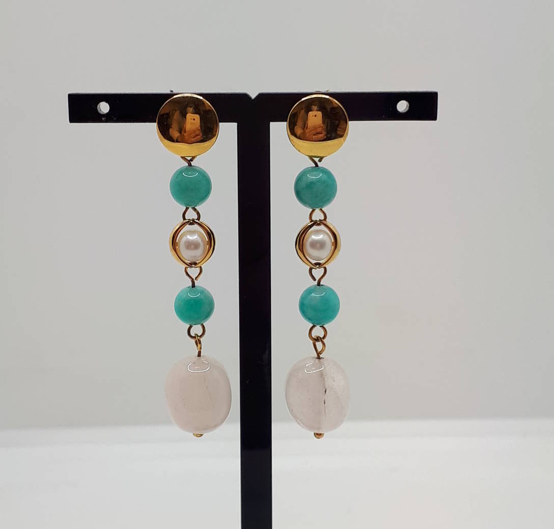 Urre kolorezkozilarrean egindako belarritakoak. Harribitxiak naturalak dira.