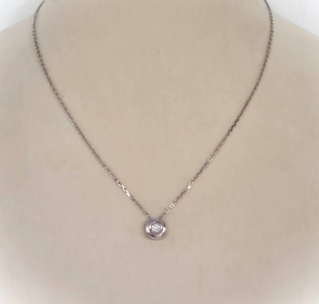 Urre zurizko lepokoa, 18km-koa, diamante natural eta distiratsu batekin, txatoian engastatua