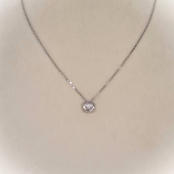 "Argi Puntua" motako lepokoa, urre zurizkoa, 18km-koa, diamante natural distiratsu batekin, 0,18cts G/VS kalitatekoa, txatoian engastatua