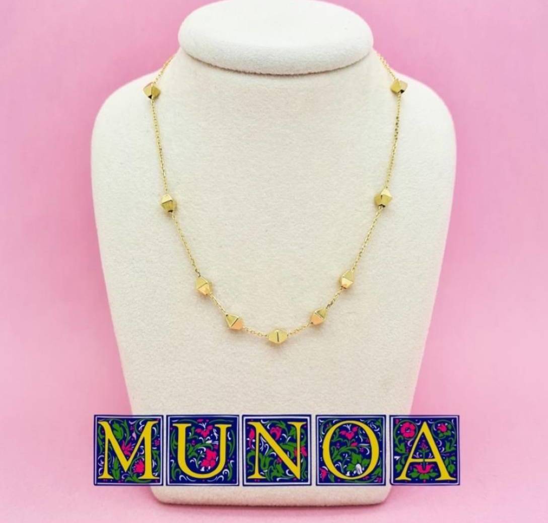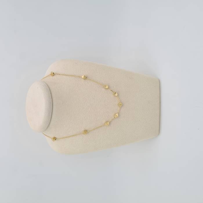 18k-ko urre horiko lepoko original eta arina, 11 piramide motiboz apainduta