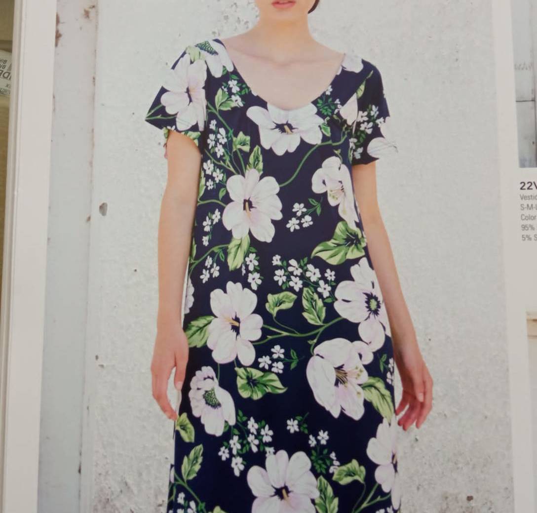 Tirante zuriz jantzita, gasa estanpatuarekin.
