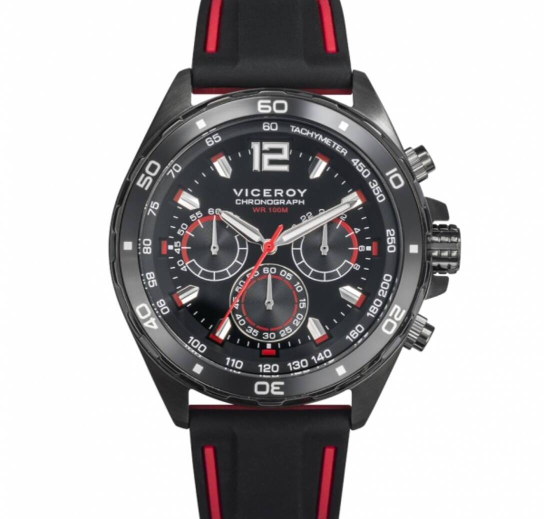 Viceroy Magnum kronografoa Gizonentzako erlojua IP altzairu grisean eta silikonazko uhala beltzean