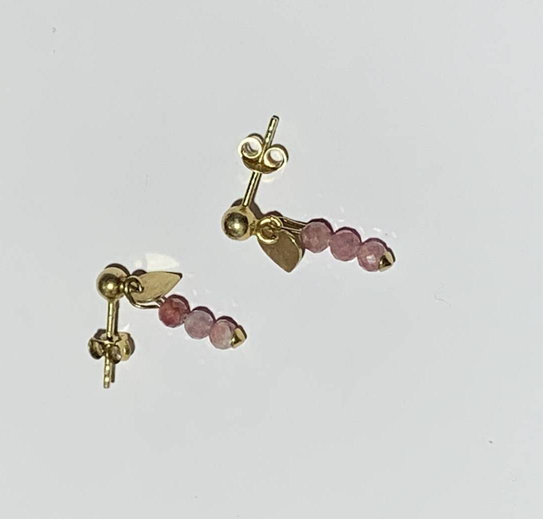 Urre kolorezkozilarrean egindako belarritakoak. Harribitxiak naturalak dira.