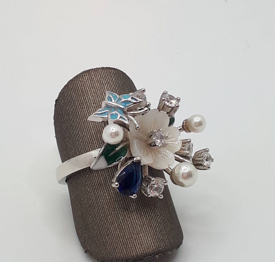 Zilarrezko eraztuna, lore itxurakoa. Nakar zentralarekin.