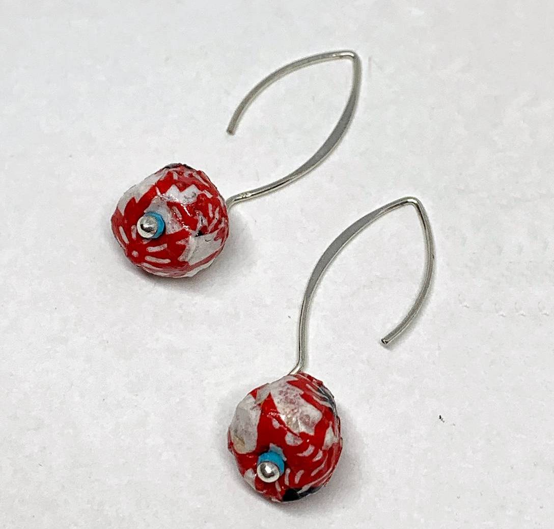 Urre arrosa kolorezko zillarrean egindako belarritakoak. Harribitxiak naturalak dira.