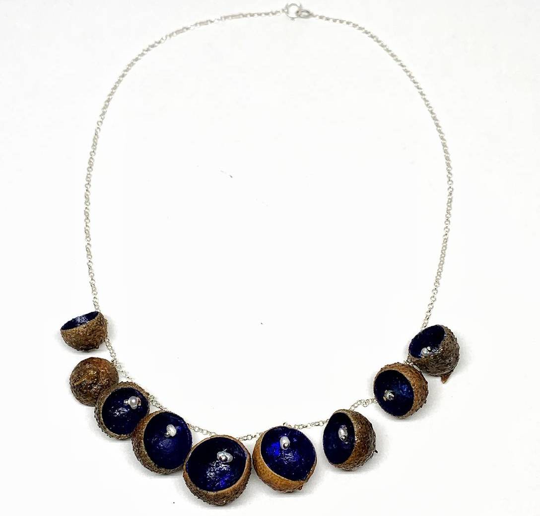 Eskuz egindako lepokoa, zelulosarekin eta urrezko zilar-katearekin